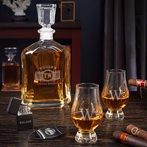 Amazon Com Marquee Custom Argos Whiskey Decanter Set With Glencairn Glasses Personalized Product Liquor Decanters